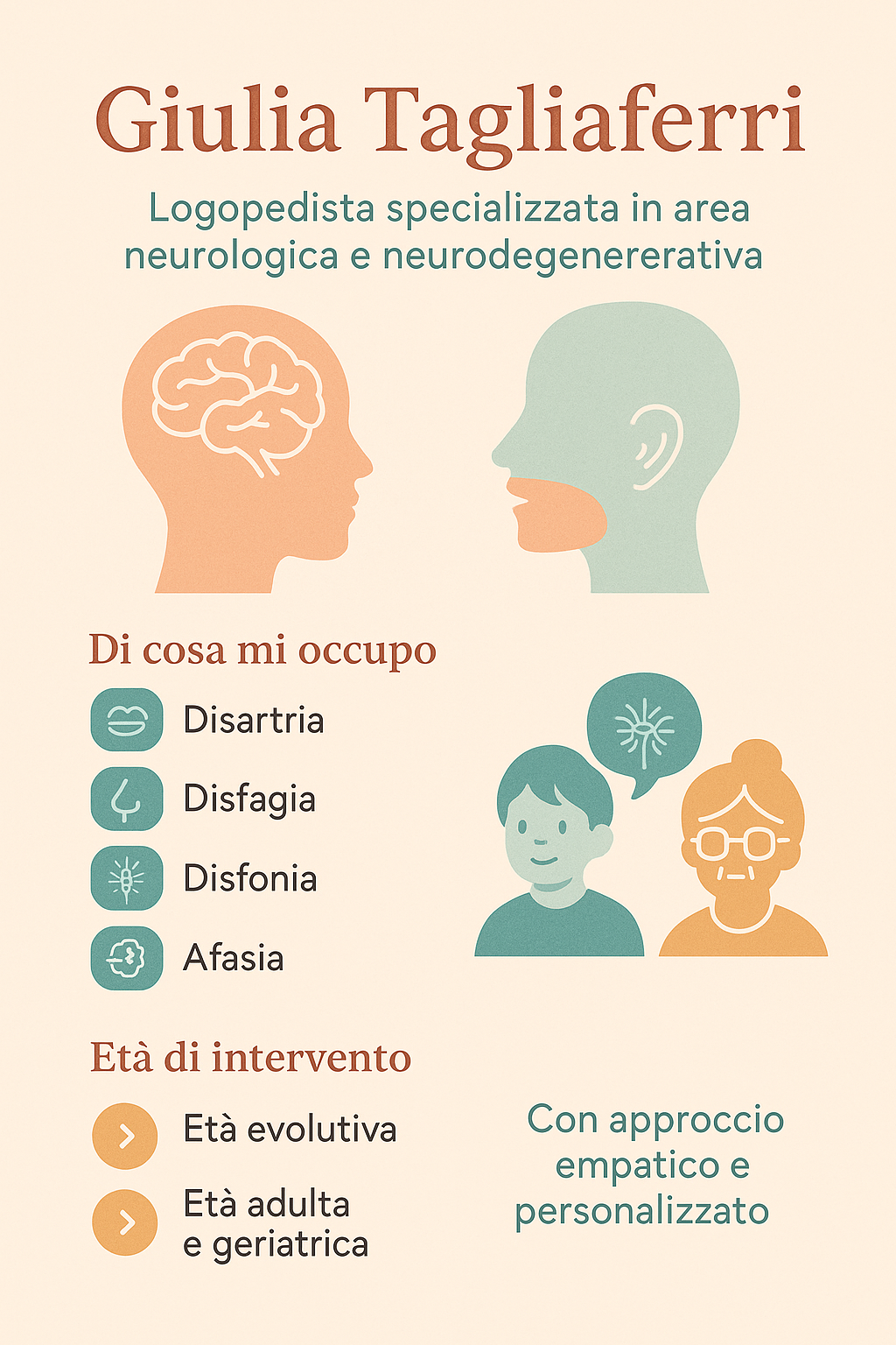 Il logopedista è l'operatore sanitario che si occupa di VALUTAZIONE, PREVENZIONE e TRATTAMENTO di patologie che riguardano il LINGUAGGIO orale e scritto, VOCE, DEGLUTIZIONE e COMUNICAZIONE. Addestra inoltre all'utilizzo di strumenti comunicativi.